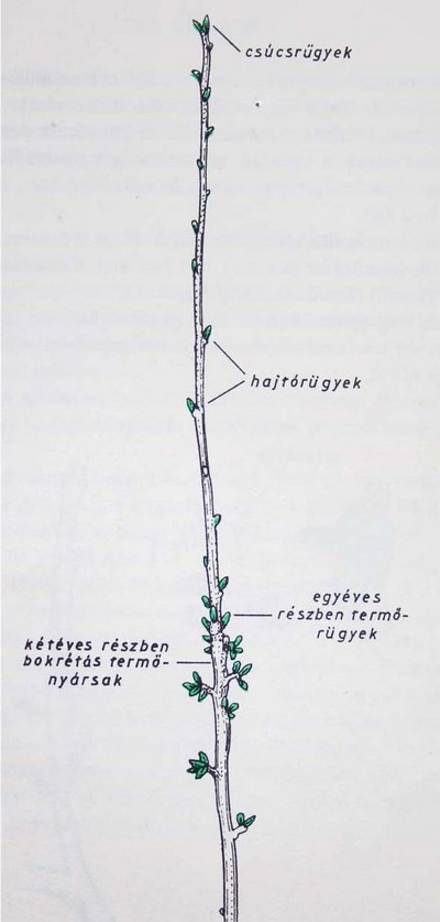 A fán a legmagasabb ponton, és a vesszőn belül a legmagasabban elhelyezkedő rügyek hajtanak ki a legerősebben.