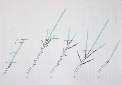 • Nem vágjuk vissza a vessző – a csúcsrügy erőteljesen kihajt, alatta párdarab fejletlen hajtás képződik. „a”