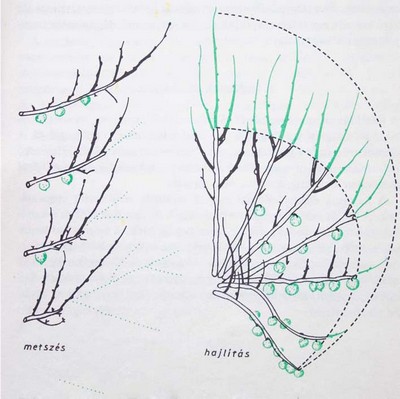 6. kép A metszés és hajlítás hatása a termésképzésre és növekedésre