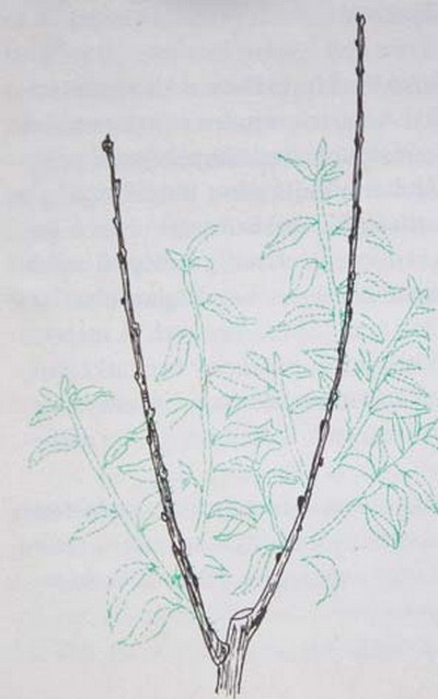 • Nem vágjuk vissza a vessző – a csúcsrügy erőteljesen kihajt, alatta párdarab fejletlen hajtás képződik. „a”