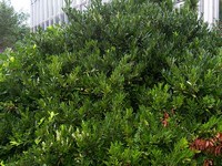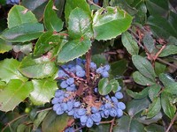 Mahonia aquifolium: Észak-Amerikából származik, 1-2 méter magas sokágú cserje. Félárnyékos helyen talajtakarónak ültetik. Áprilisban gazdagon virágzik, kedvelt koszorú örökzöld.