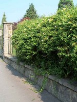 Lonicere henry: több méter magasra kúszó cserje, virága sárgásvörös, illatos.