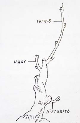 • Ugarcsap: A következő évi termőcsapok nevelésére használjuk. A felkopaszodás elkerülésének az érdekében az ugarcsapot mindig a termőcsap alatt hagyjuk meg.