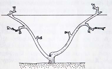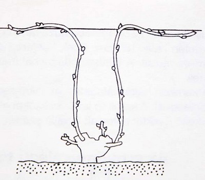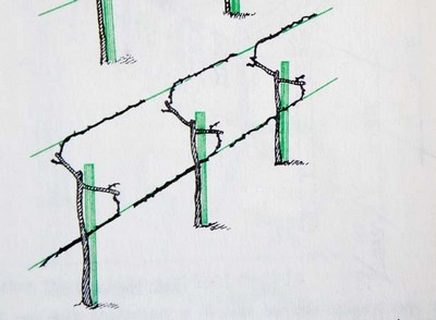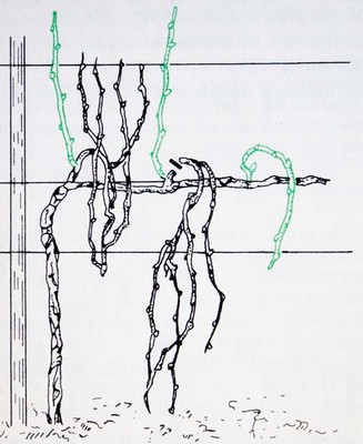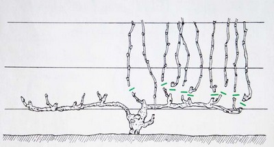9. kép: Alacsony kordonművelésű szőlő rövidcsapos metszése Korszerű művelésmódok