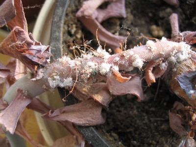 Megjelenésük száraz levegőjű helységben gyakoribb. Általában a rügyeket és a hajtáscsúcsokat szállják meg. Szívogatásukkal gyengítik a növényeket. Ezek a fertőzött növények fejlődésükben visszamaradnak. A károsított hajtások gyakran meggörbülnek, a levelek többnyire besodródnak, összecsavarodnak, esetleg le is hullanak. Közvetett kártételük – a fagyérzékenység fokozásán túl –hogy betegségeket terjesztenek. Mézharmatot ürítenek, ami további fertőzések táptalaja lehet (korompenész). Vírusvektorok is. A teleltetett fajok közül leginkább veszélyeztetett a fukszia, a futó-, az álló-, az illatos-, a díszlevelű muskátli, a selyemmályva, a Bougainvillea, a Citrus fajok, az angyaltrombita, a hibiszkusz, a leander, a gránátalma és a csucsor. Mindenképpen célszerű a díszértékét vesztett részek levágása, mivel ezzel egyidejűleg gyérítjük a kártevőt és újabb kártevők megtelepedését is megakadályozhatjuk. Üvegházi molytetű A növények a molytetvek ürülékétől fényes bevonatúak (mézharmat), amin előszeretettel megtelepszik a korompenész. A levelek fokozatosan elhalványulnak, majd lehullnak. Az imágók (kifejlett rovar) a levél fonákán szívogatnak, a levél érintésekor tömegesen röppennek fel. Apró, fehér legyecskékre emlékeztetnek. Melegigényes faj. Nálunk a szabadban nem tud áttelelni. Szaporodása zárt, fagymentes helyen azonban egész éven át folyamatos. Vírusvektorok. Mindenképpen célszerű a díszértékét vesztett részek levágása, mivel ezzel egyidejűleg gyérítjük a kártevőt és újabb kártevők megtelepedését is megakadályozhatjuk. Kedveli a fuksziát, a futó-, az álló-, a díszlevelű muskátlit, a selyemmályvát, az angyaltrombitát, a hibiszkuszt, a lantanát, a csucsort.
